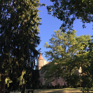 L’immersion est totale dès l’entrée dans le bâtiment construit entre le XIIe et le XIVe siècle, puis restauré et aménagé en hôtel 5 étoiles avec piscine chauffée, terrains de tennis entre forêt et jolis jardins et bains bouillonnants dans toutes les chambres.